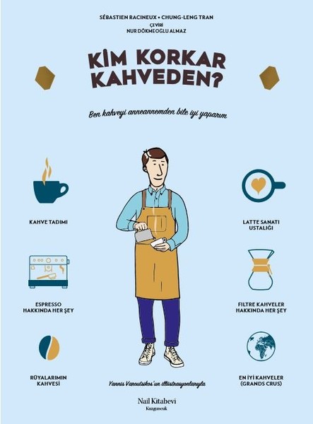 Kahve sudan sonra dünyada en çok tüketilen içecek. Fakat iyi bir kahve yapmak da iyi bir kahve içmek de öyle kolay bir iş değil. Eserde yer alan usta baristaların teknikleri ve açıklamalarıyla nefis bir kahve hazırlayabilmek günlük rutininiz haline gelecek. Kullanılan fincan tiplerinden kahve ekim alanlarına, kahve makinesi seçiminden, öğütme çeşitlerine ve kahve türlerini nasıl tanıyabileceğinize dek pek çok temel konuda önemli bilgiler edineceksiniz. “Filtre kahve hep vasat olur”, “Espresso filtre kahveye göre daha çok kafein içerir”, “En iyi espressoyu İtalya'da içersin!” gibi klişeleri de yıkan bu kitapta harika latte'ler yapmanın püf noktalarına da değiniliyor. Hazır toz ve üçü bir arada kahve kültürünün giderek yükselişe geçtiği bir dönemde “gerçek kahvenin” dünyasını birbirinden güzel illüstrasyonlar ve resimlerle sunan “Kim Korkar Kahveden?”, kahve severlerin yüzlerini güldürecek bir başucu kitabı niteliği taşıyor.