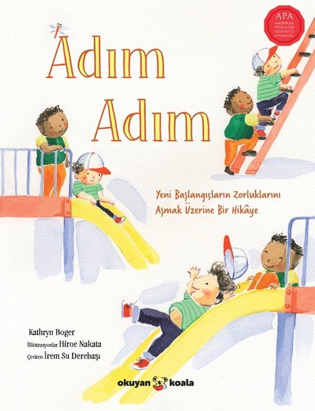 Adım Adım, yeniyle karşılaşmanın getirdiği korkuları -bir çocuğun bakış açısından- sevgi dolu bir annenin varlığıyla nasıl dönüşebileceğini anlatıyor. Alp'in annesi, ona her şeyi bir anda yapmak zorunda olmadığını, küçük adımlarla ilerleyerek korkuların üstesinden gelinebileceğini model oluyor.