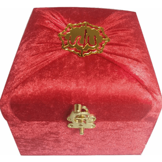 M285K - Mühürlü Cep Boy Kadife Sandıklı Mealli Kuran-ı Kerim - Kırmızı...
